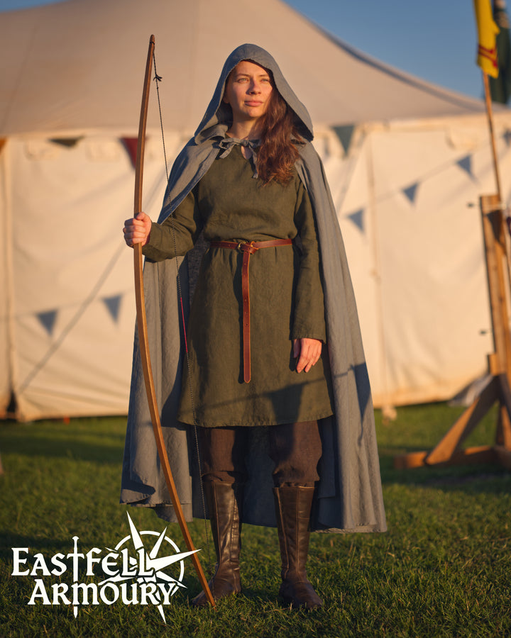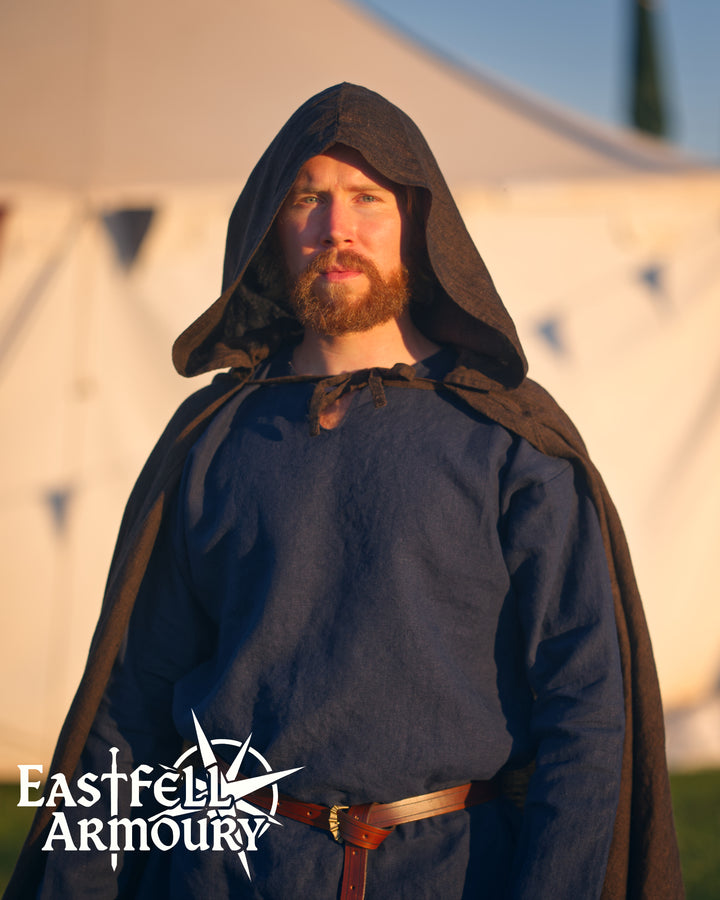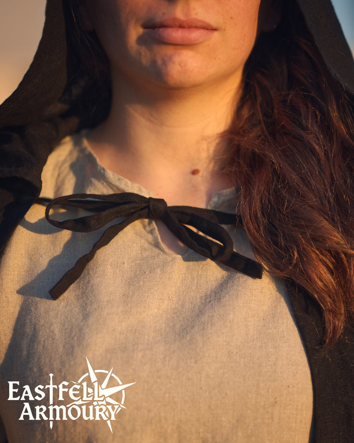 This versatile linen cloak provides just the right amount of warmth for year round adventure! Inspired by our Ranger Cloak design, the Adventurer's Cloak is fully hemmed around the bottom edge and fastens with a linen tie. Ideal for medieval, fantasy, or Lord of the Rings inspired cosplay, LARP, or stage and film productions.