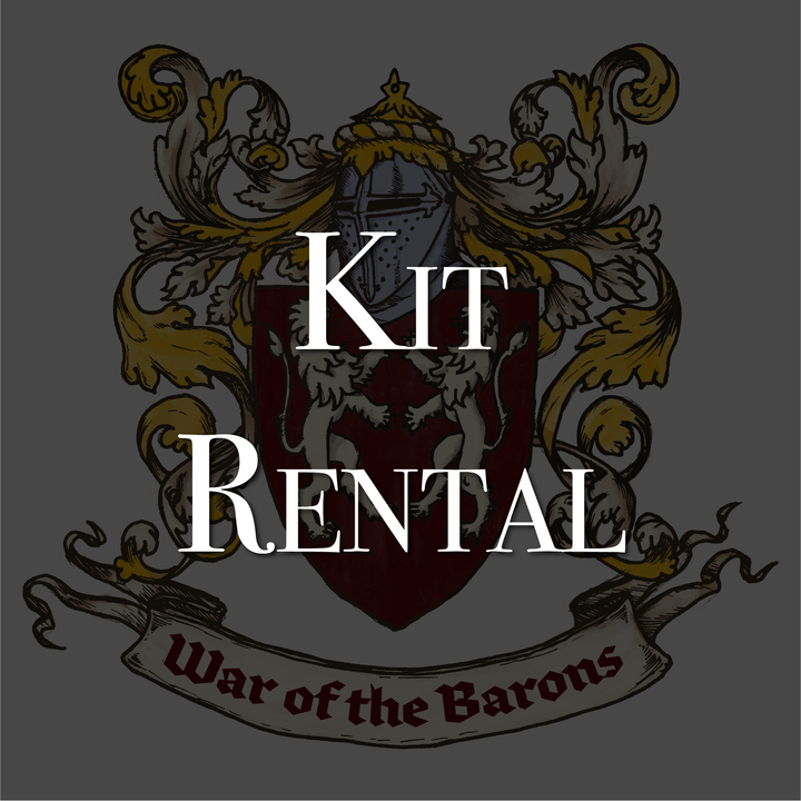 Please note that a rental kit will not include any distinct heraldry elements. If you are playing the role of a knight, you are responsible to provide your own heraldic surcoat for the event.