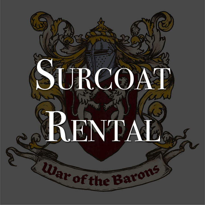 Please note that the surcoats are plain and do not include heraldry. This surcoat rental will not be sufficient for a knight character who is required to wear their baron's full heraldry.